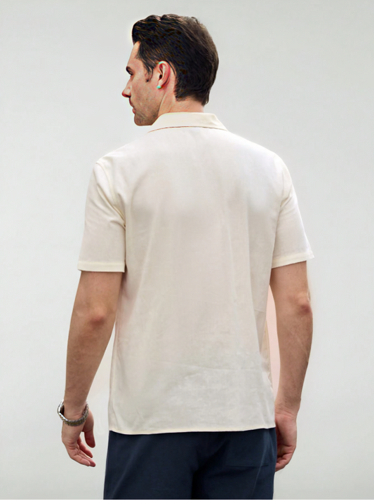 Witte Katoenen Slim Fit Mandarin Kraag Korte Mouwen Casual Overhemd voor Mannen