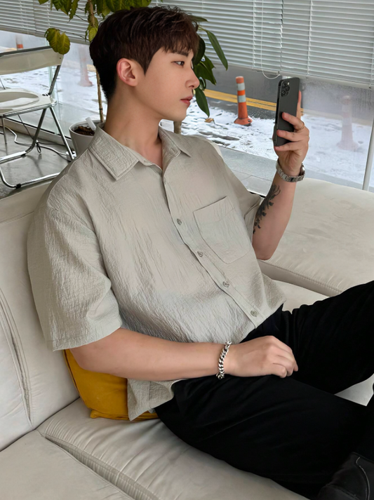Grijs Effen Kleur Korte Mouwen Button-Up Overhemd met Zak voor de Zomer